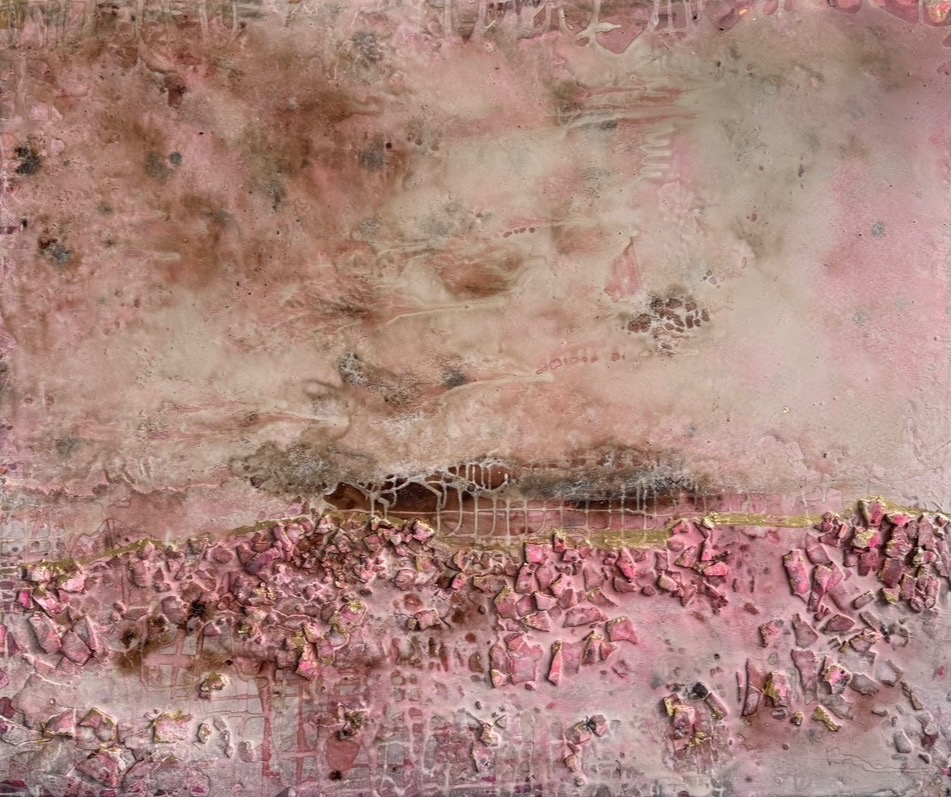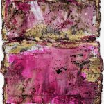 mixed media pigments, sand, stone powder, bitumen, gold leaves, resin on canvas